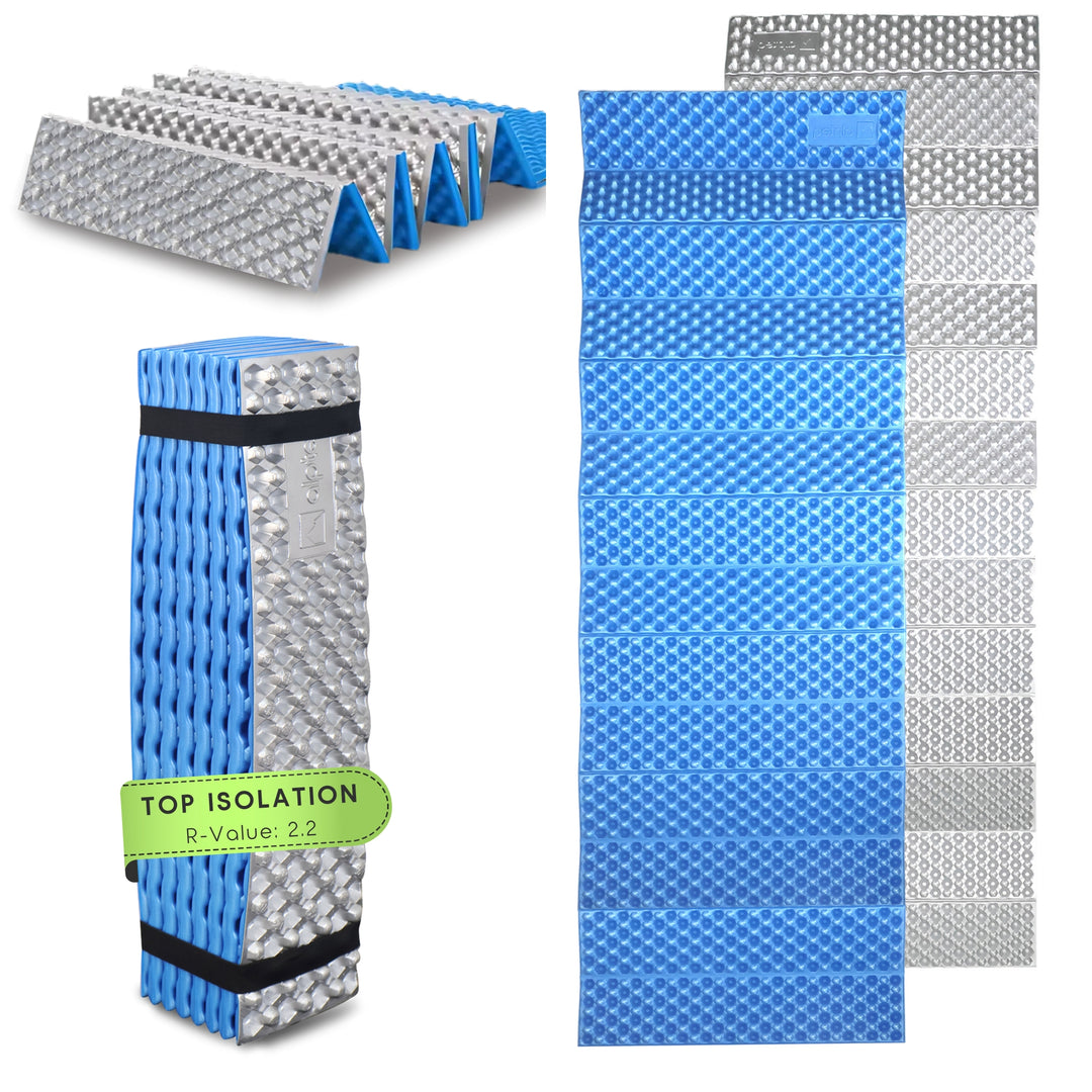Sleeping and sitting mats – lightweight, compact, and reliably insulating with an R-value of 2.2.