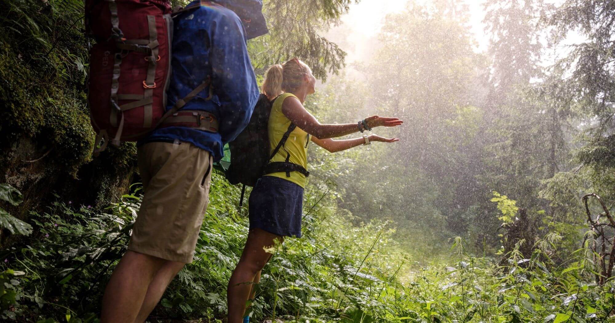 Sorgfältig ausgewählte Materialien schützen dich selbst bei bei Starkregen stürmischen Tagen.